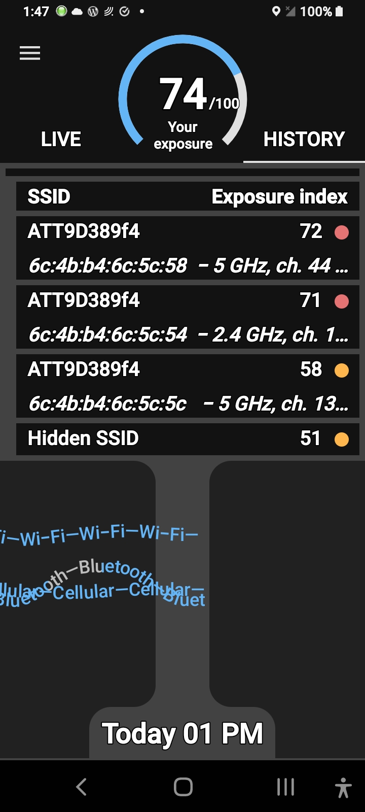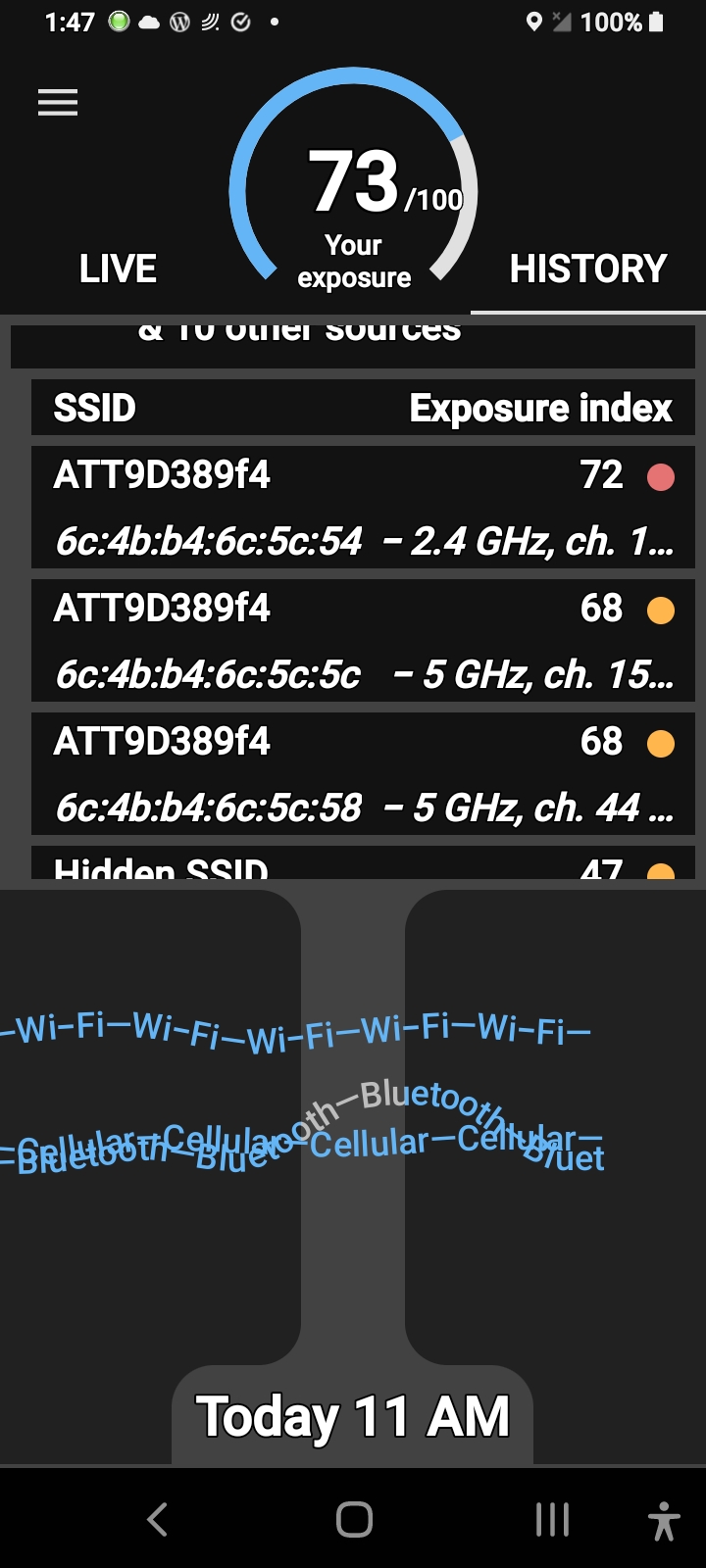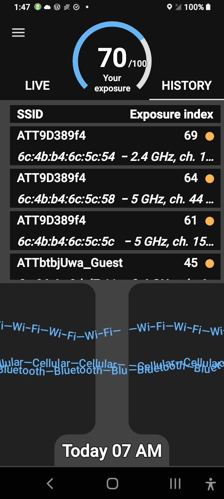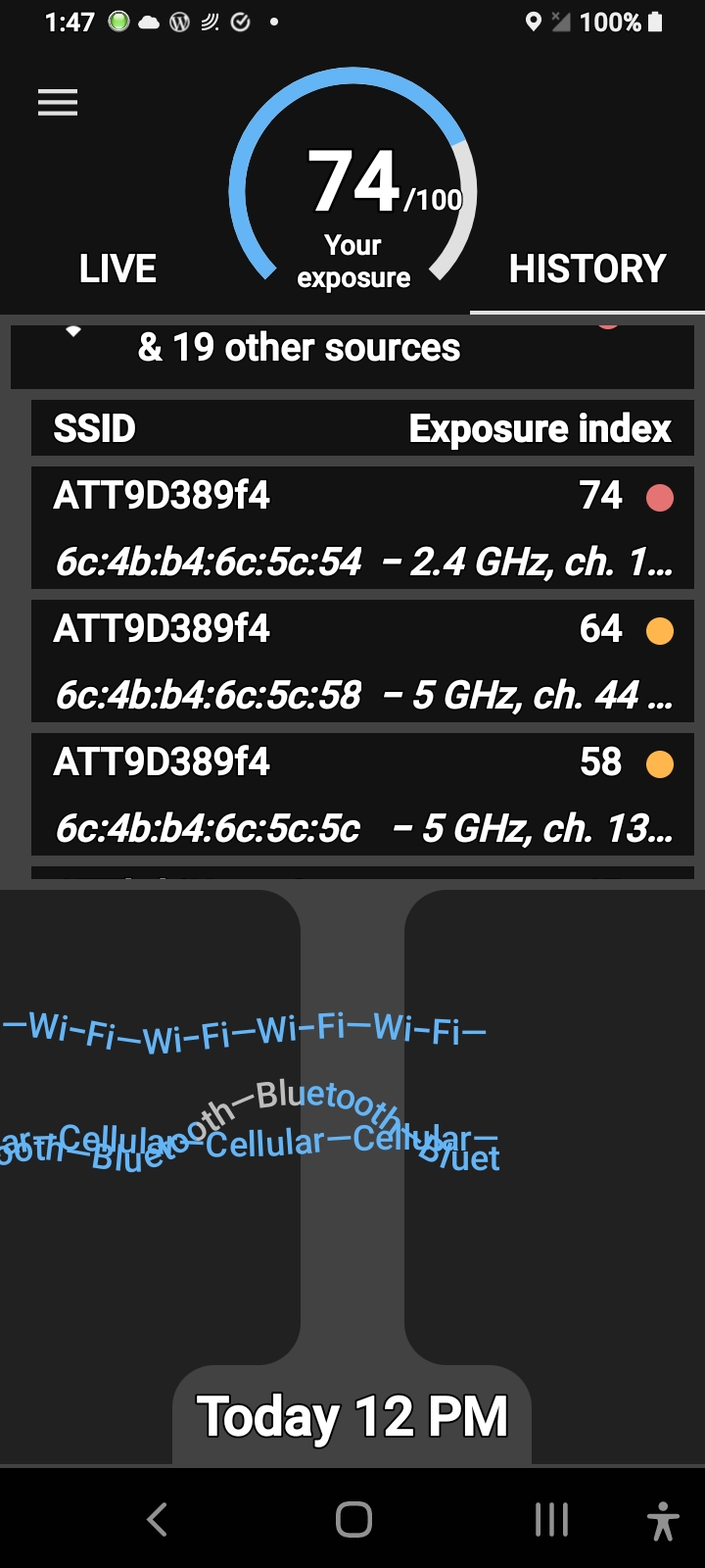 You also notice the power fluxing up and down into past the 70 exposure rating on the electrosmart app here it could be monitored with other apps but this is the best one so I asked you and I implore that I know what’s going on; who’s large data stream is coming through my router that I’m paying for with two 5g channels I can’t use? The Biometrics from the covid19 mRNA 2.4ghz self assembling graphene oxide nanoparticle antenna assemblies. In other words, the #Bluetoothed, that’s who!